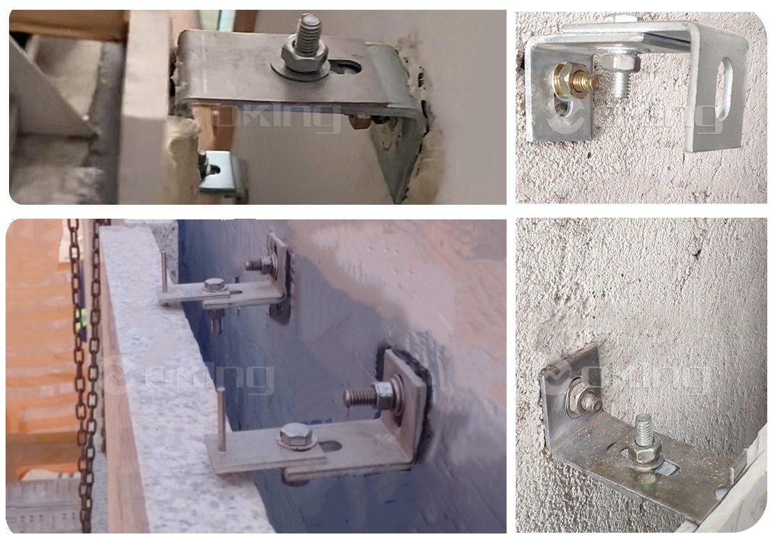 Pemasangan jangkar di dinding blok kerja yang diisi menggunakan AZB03 Tiga Pelindung Jangkar Baut.