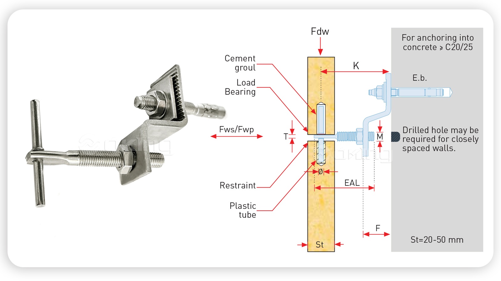 | K (mm) | K - (mm) | K (mm) | Fdw (N) | F (mm) | Fwp (N) | Fws (N) | Eb(mm) | f (mm) | M (mm) | T (mm) | EAL(mm) | |
